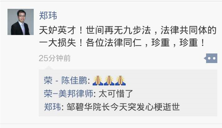 10日下午,上海市高级人民法院副院长邹碧华突发心脏病,经抢救无效去世。