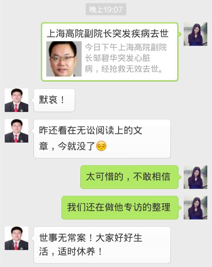 就在半个月前,无讼还曾对邹院长进行过一次专访,他像一位互联网产品经理一样,谈着自己主导的上海高院信息化平台,谈着大数据,谈着用户体验,谈着体制的变革和法治的走向。那些眉宇间的踌躇满志,是法律人深深的抱负。