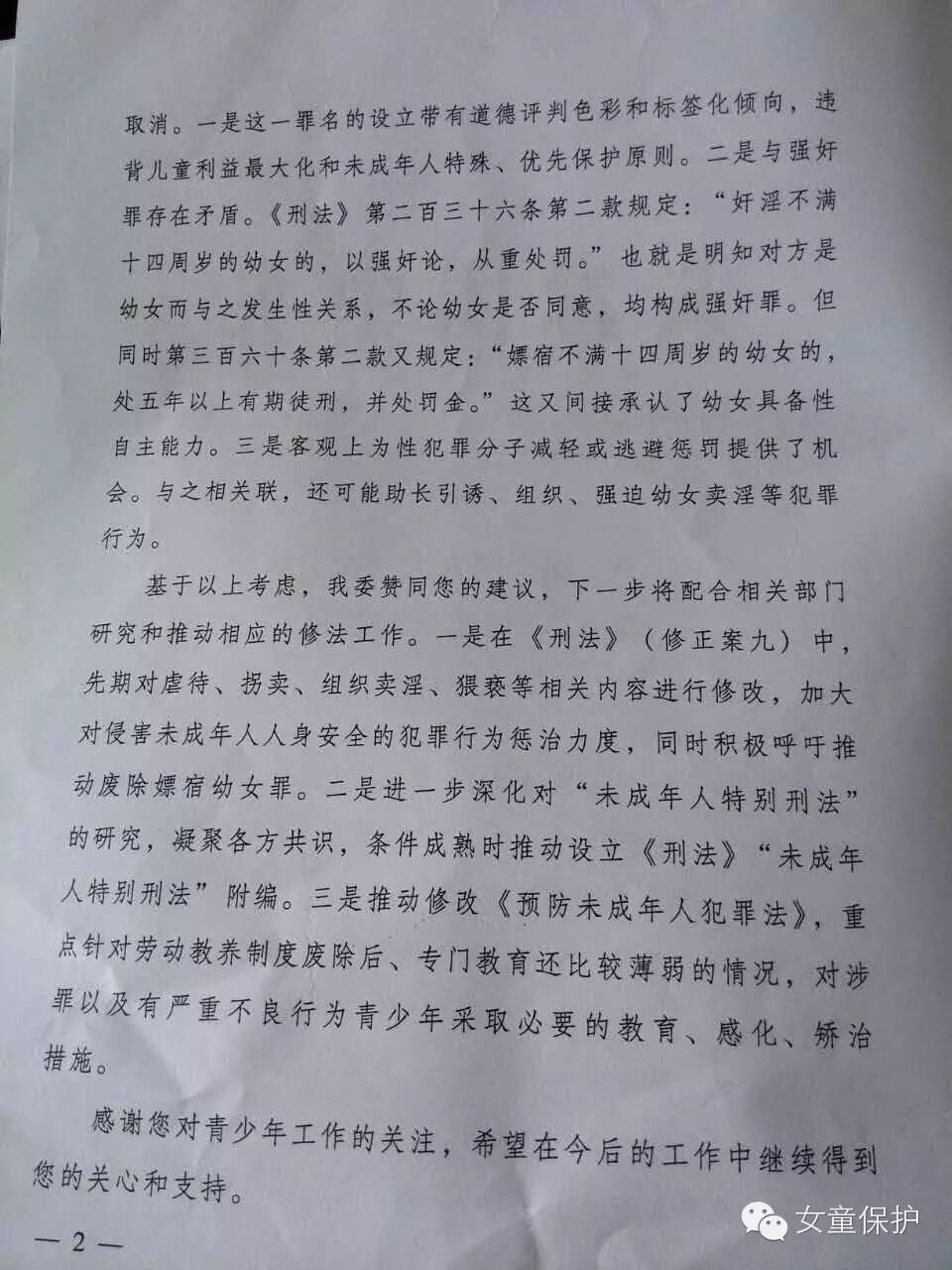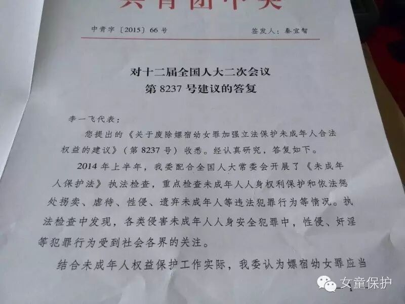 连续多年,多位全国人大代表、政协委员提交议案、提案,各级妇联、组织机构也通过提案、报告等不同渠道,建议修改刑法,废除嫖宿幼女罪、并入强奸罪。